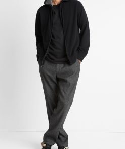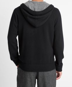 Vince Men’s Cashmere Zip-front Hoodie | Black & Medium Heather Grey