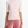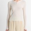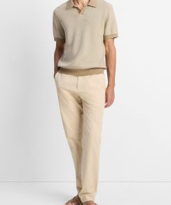 Our take on the timeless Johnny-collar sweater is distinguished by tonal colorblocking and crafted from a sumptuous blend of cotton and cashmere. It’s knit in a two-tone feed stripe, resulting in unique texture and dimension that beckons a closer look.