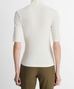 Vince Women’s Ribbed Cotton Elbow-sleeve Turtleneck Top | Off White