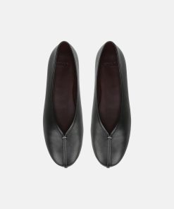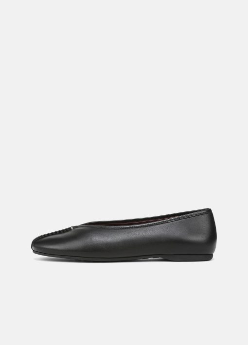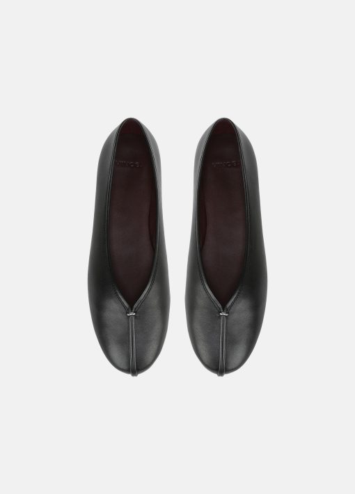 Soft leather panels are held together down the center with a small metal bar accent for a refined, deconstructed spin on the timeless ballet flat. At the bottom, a rubber outsole provides discreet traction.