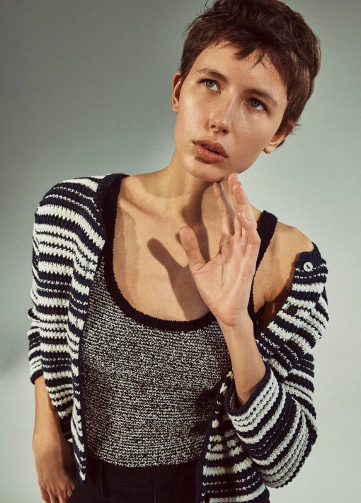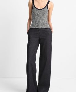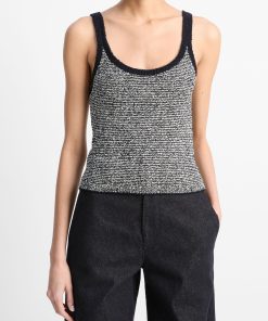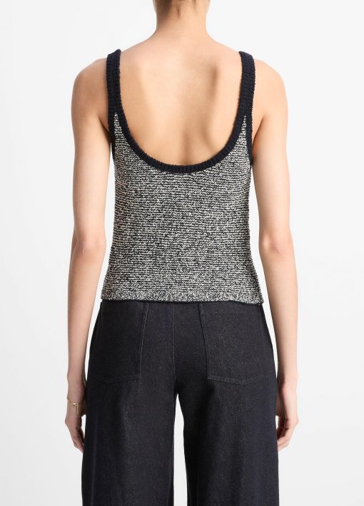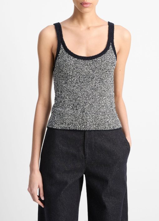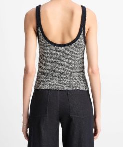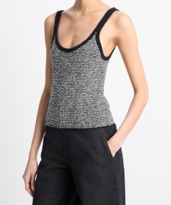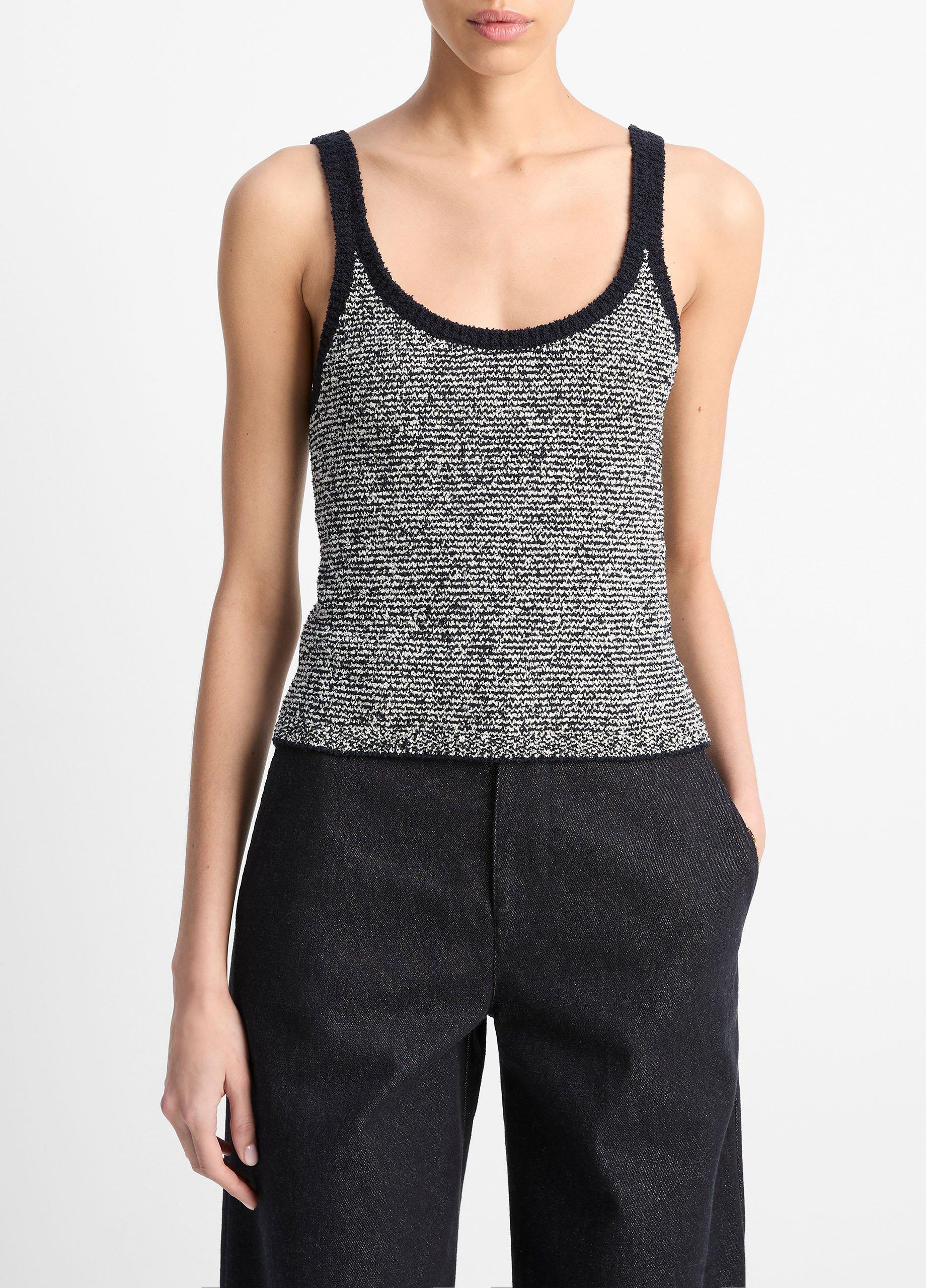 Vince Women’s Textured Micro-stripe Italian Cotton-blend Sweater Tank | Coastal Blue & Oat Shell